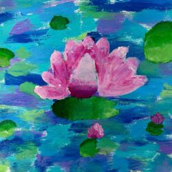 ‘When my now 17-year-old grandson was quite young I told him, as we travelled on a train to Melbourne, that we were going to the National Gallery of Victoria to look at an exhibition displaying some of Monet’s paintings that contained water lilies. He looked at me inquiringly and asked, “Granny, will there be frogs?” This piece brought back this touching memory.’