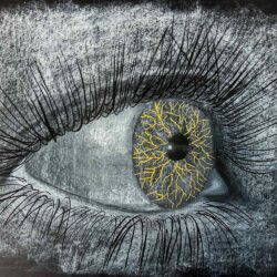 ‘I found this work dramatic and creating a sense of stillness. The side on view of the eye invites the viewer to pause and wonder, both what the person is viewing but also what they are thinking about. The more I look into the eye, the more detail becomes present, such as the detail in the iris, the subtle shading in the cornea, the exquisite lashes, and the small hint of the surrounding face of the person who is captured here.